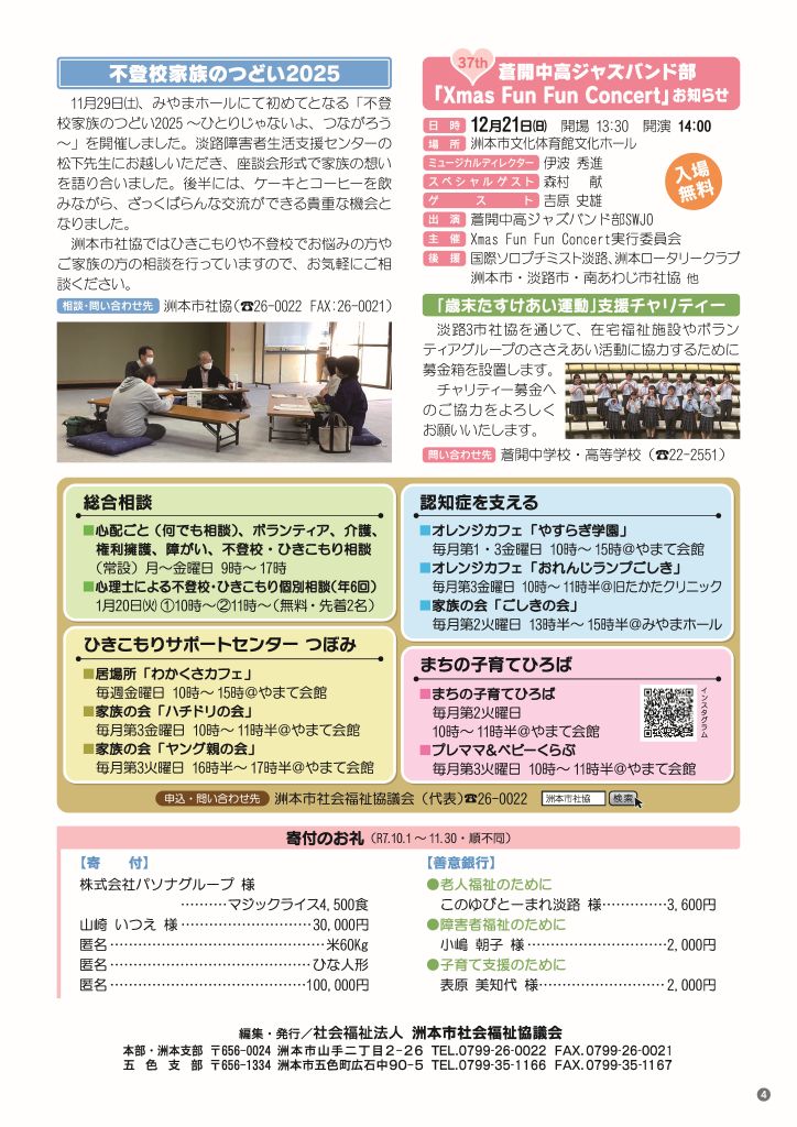 洲本市社会福祉協議会では、毎月15日に広報紙を作成し、町内会のご協力により市内全戸配布しています。