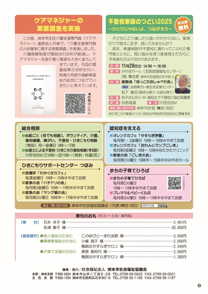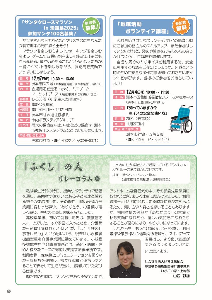 洲本市社会福祉協議会では、毎月15日に広報紙を作成し、町内会のご協力により市内全戸配布しています。